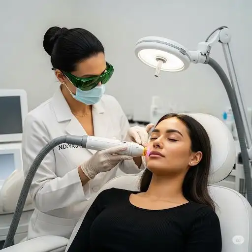 Advanced laser technology targets excess melanin to reduce dark spots and sun damage.